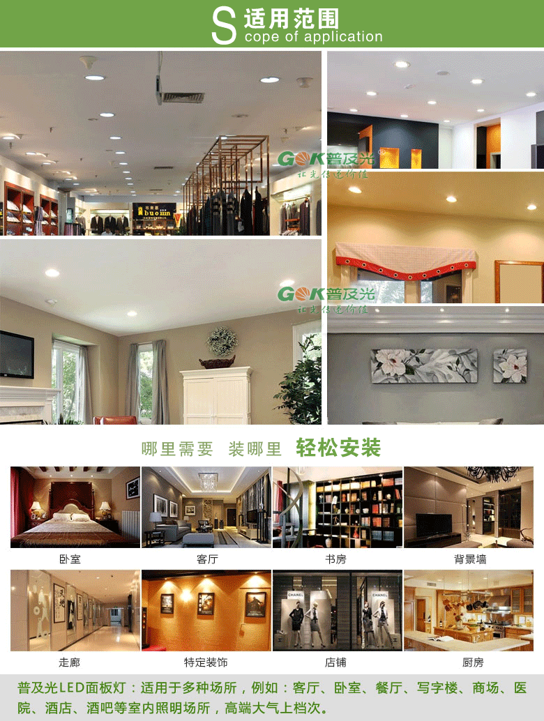 1, professional and efficient energy saving for the western restaurant, ultra low power consumption, more than 70% than the traditional light source, maintenance free. Installation methods are as follows: 1) embedded type 2) lifting type 3) ceiling type 4) embedded type.