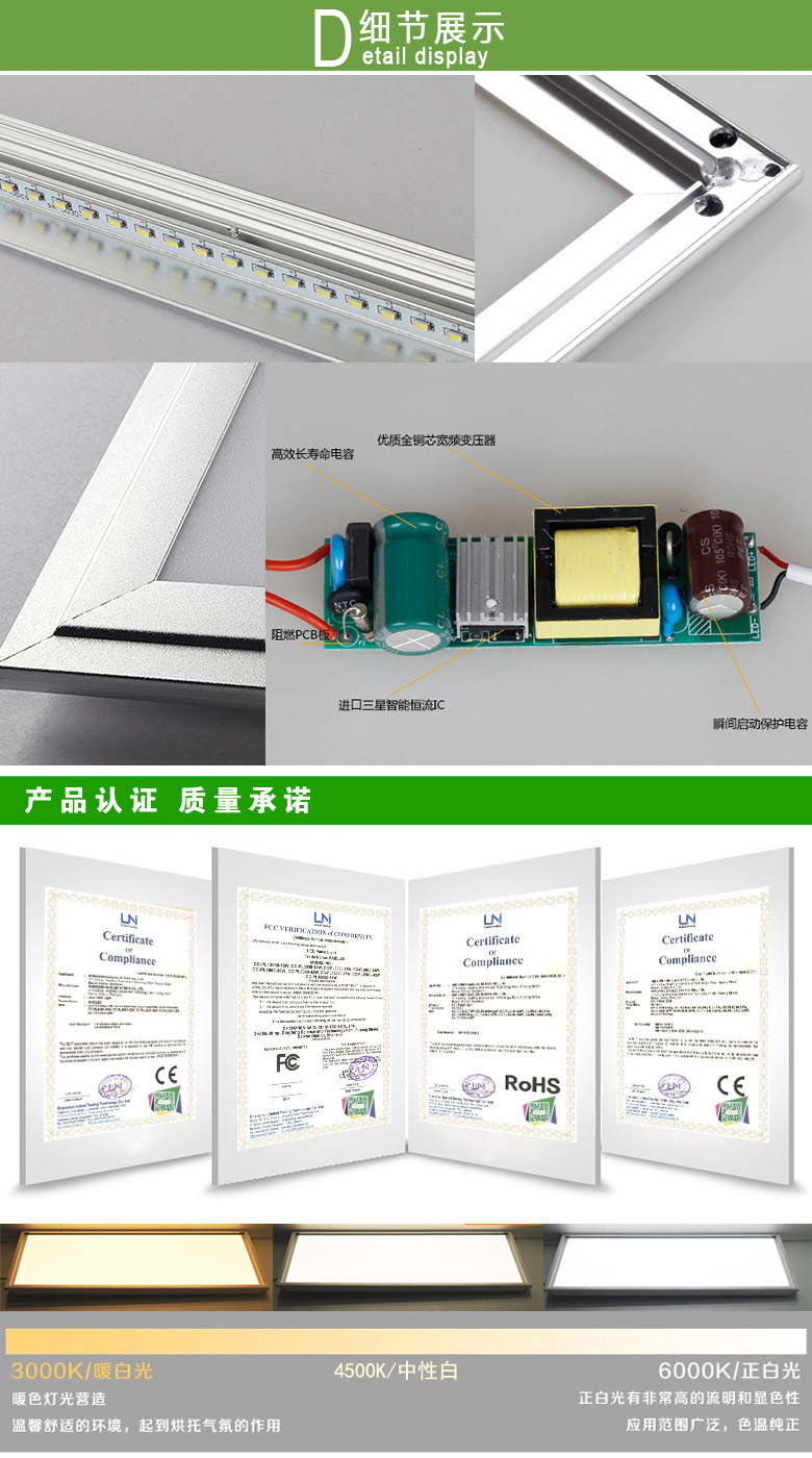 LED panel light as a tall on the lighting lamps, widely used in offices, business places, hotels, hotels, department stores, hospitals and other high-end indoor lighting places.