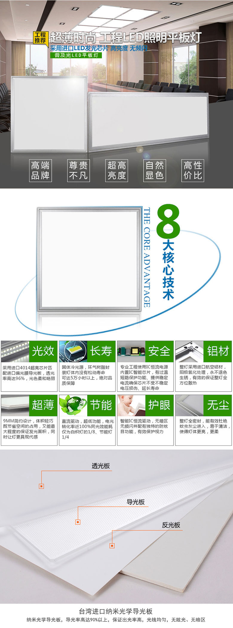 Popularization of product characteristics of light LED panel light: