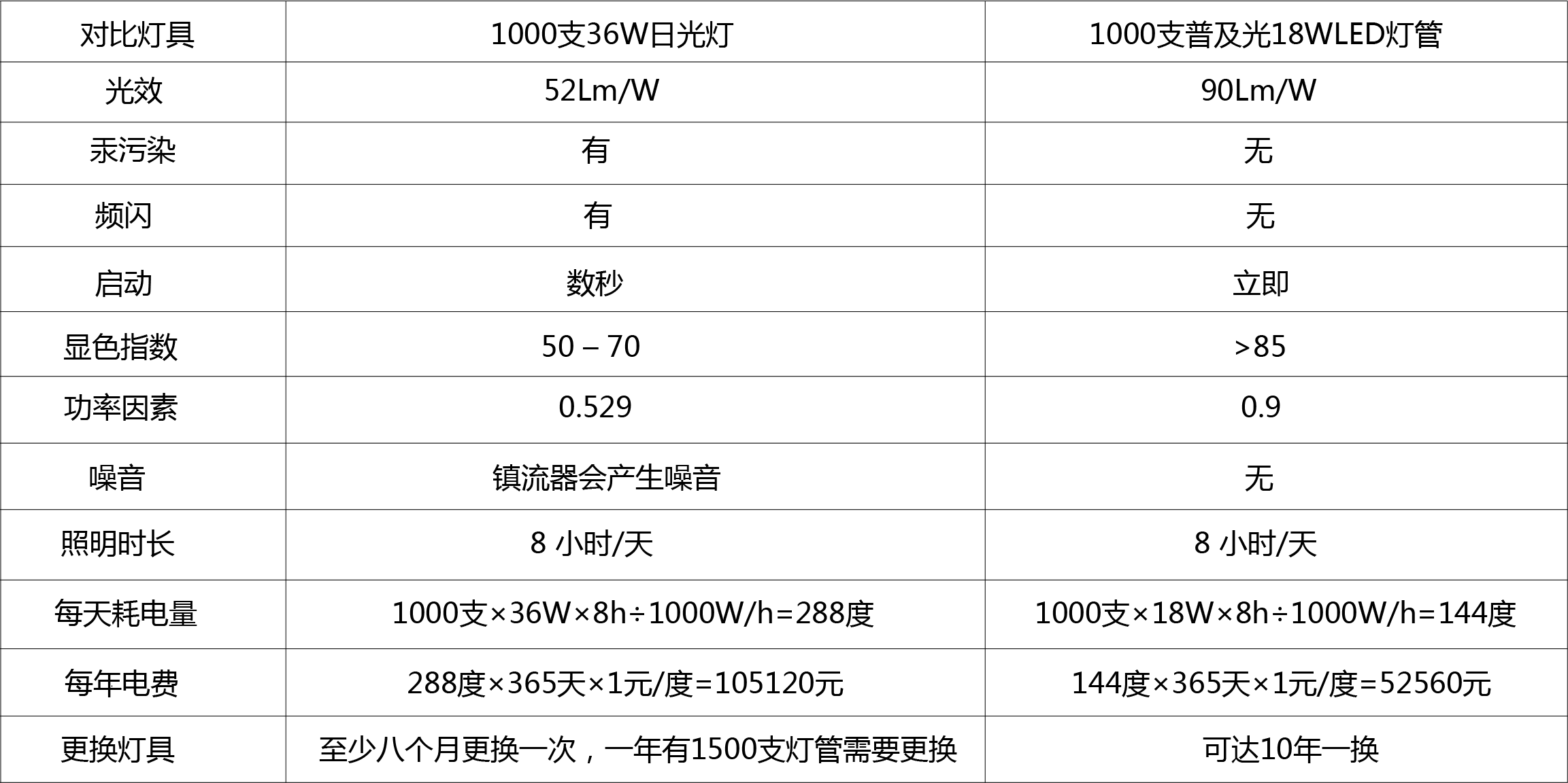 Summary: in the case of 1000 light tubes, the use of universal light LED fluorescent tube than the use of traditional fluorescent lamps to save half of the electricity. You want to know how much electricity a year after you change the lights, use the above formula set to try it.