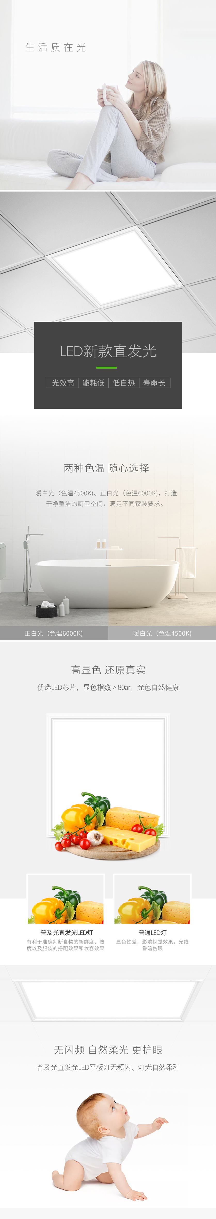 LED高品質(zhì)直發(fā)光平板燈,光效強(qiáng)高顯色,無輻射無頻閃,低光衰低能耗;是室內(nèi)外照明產(chǎn)品首選。